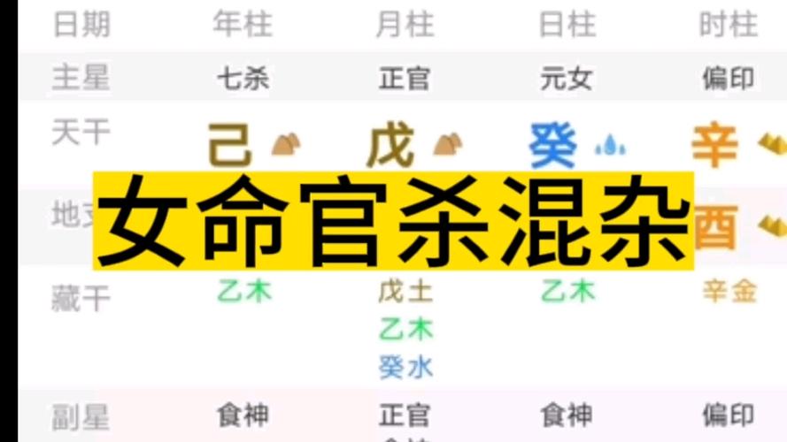 官杀混杂的女命八字,是指八字中既有官员又有官员,两者都有力量。官员和官员都是克制日主的十神,所以官杀混杂的女命往往性格坚强,事业心重,能力出众。