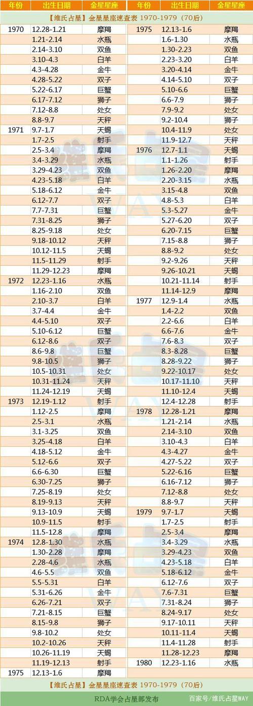 7. 天秤座如果你出生于1970年9月23日至10月22日,你的星座是天秤座。天秤座的人通常是平衡、和平、理性的个体。他们通常是好的谈判者和调解人,善于看到不同人的不同观点。这些人也很感性,很容易受到周围环境和人的影响。然而,他们往往需要学会拥有自己,而不仅仅是追随别人的意愿。