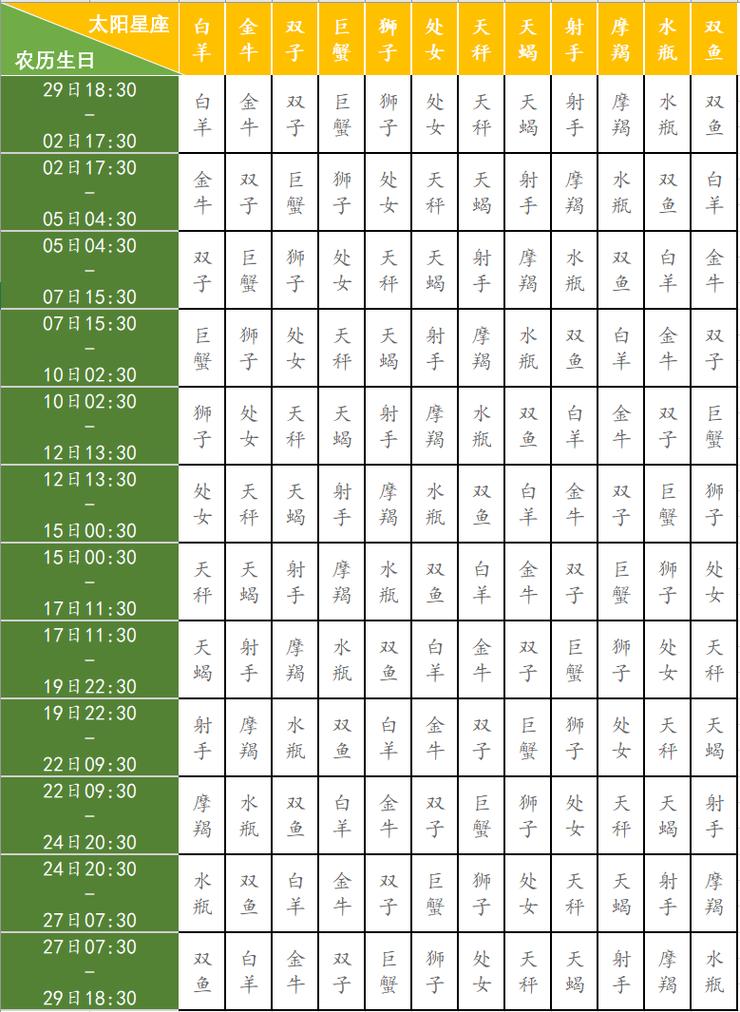 3、月亮星座查询表只是一个粗略的估计,相当于每月29天。但事实上,大月是30天,每年的情况都应该不同。因此,最详细的计算必须检查更详细的表。