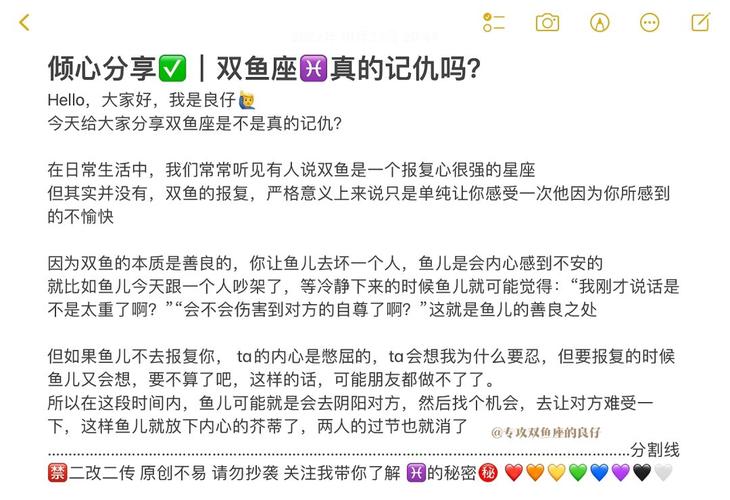 通过了解双鱼座独特的记仇方式,我们可以避免伤害他们敏感的心灵,建立更和谐、更有同理心的关系。