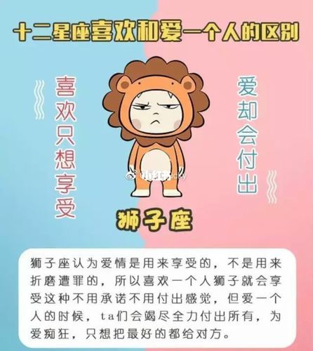 第二,在狮子座男孩眼里,喜欢和爱情是有区别的。你不这么认为。狮子座男孩总是把他们的热情传播给他周围的每个人。在他眼里,没有人是陌生人或无限制的。我们都可以成为好朋友。他可以喜欢很多人,但他从不轻易说爱。当他的另一半出现时,他只爱她,而不说喜欢,因为他认为喜欢并不能表达那种真实的感觉。所以,不要被狮子座男生说喜欢蒙蔽了双眼。他说喜欢你其实只是很喜欢你的特点,但是当他真正爱上你的时候,他会直接说:“我爱你!”