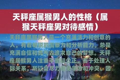 在十二生肖和西方星座的交汇处,天秤座的猴男诞生了。他是一个矛盾的人,聪明幽默,果断犹豫。