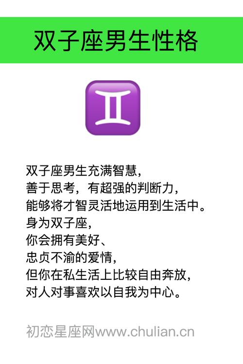 千变万化:双子座男生往往表现出多变的性格,会灵活应对新环境,善于适应变化,但也不容易稳定,因为心思太苛刻。