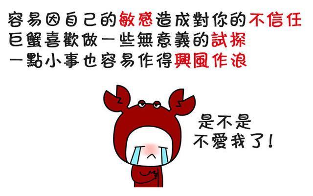 巨蟹座属于海王,很多人可能不知道海王是什么意思。海王是那种在海里撒网的人。他们没有专一的目标,抓住了哪一个。所以他们很少在感情上付出的真诚,因为每一个恋爱对象对他们来说都是偶然的,并不是真正喜欢的。巨蟹座总是处处留情。他们对每个异性都很好,不主动也不拒绝。当对方向他们示好时,如果已经有了恋爱对象,巨蟹男会把自己的感情状态隐瞒给对方,然后和对方暧昧。不说喜欢,也不说不喜欢,总是挂在对方身上,可以说渣到了。