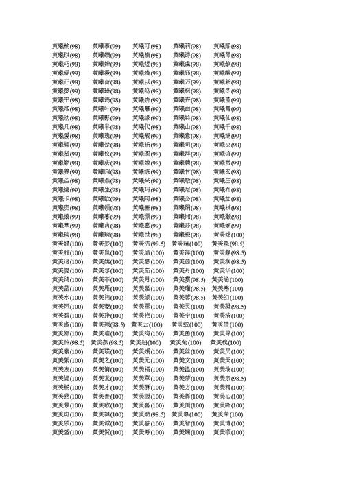 黄字被命名为女孩的名字