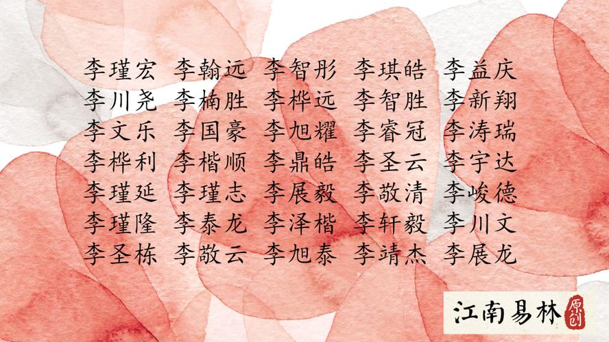 以上是李姓男孩的名字。我希望你能根据孩子的个性特征选择合适的名字,让孩子在未来的成长道路上骄傲,有自己正确的追求。
